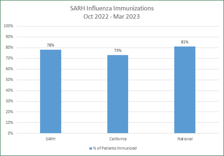 Patients at San Antonio Regional Hospital received the vaccine 78% of the time compared with 73% for the State of California and 81% for the U.S.