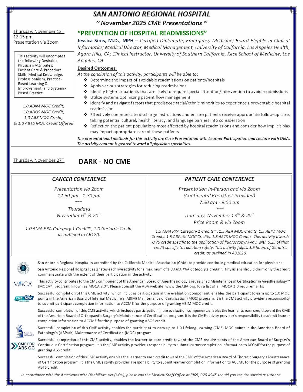 Download the November 2025 Medical Staff CME Calendar